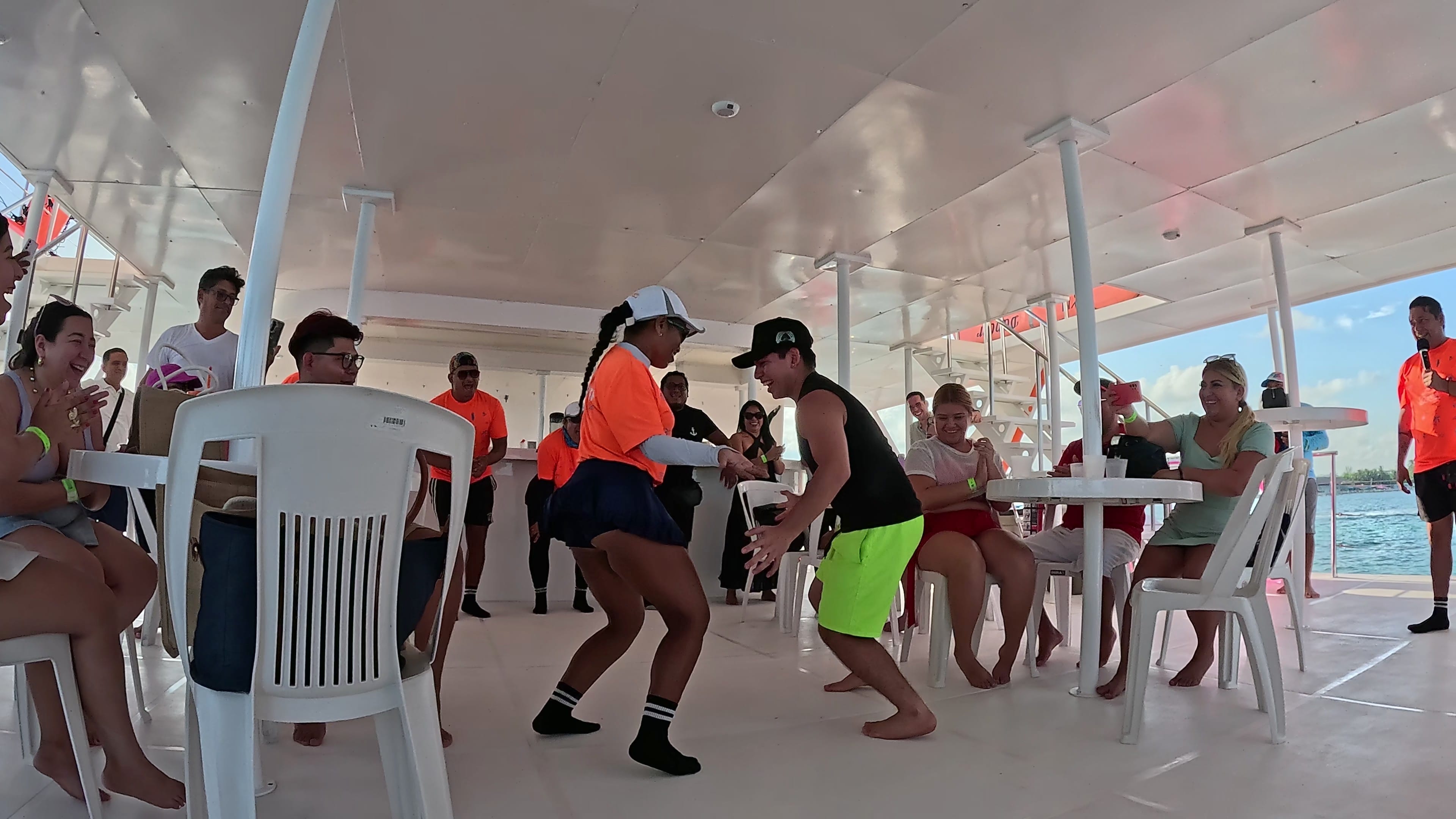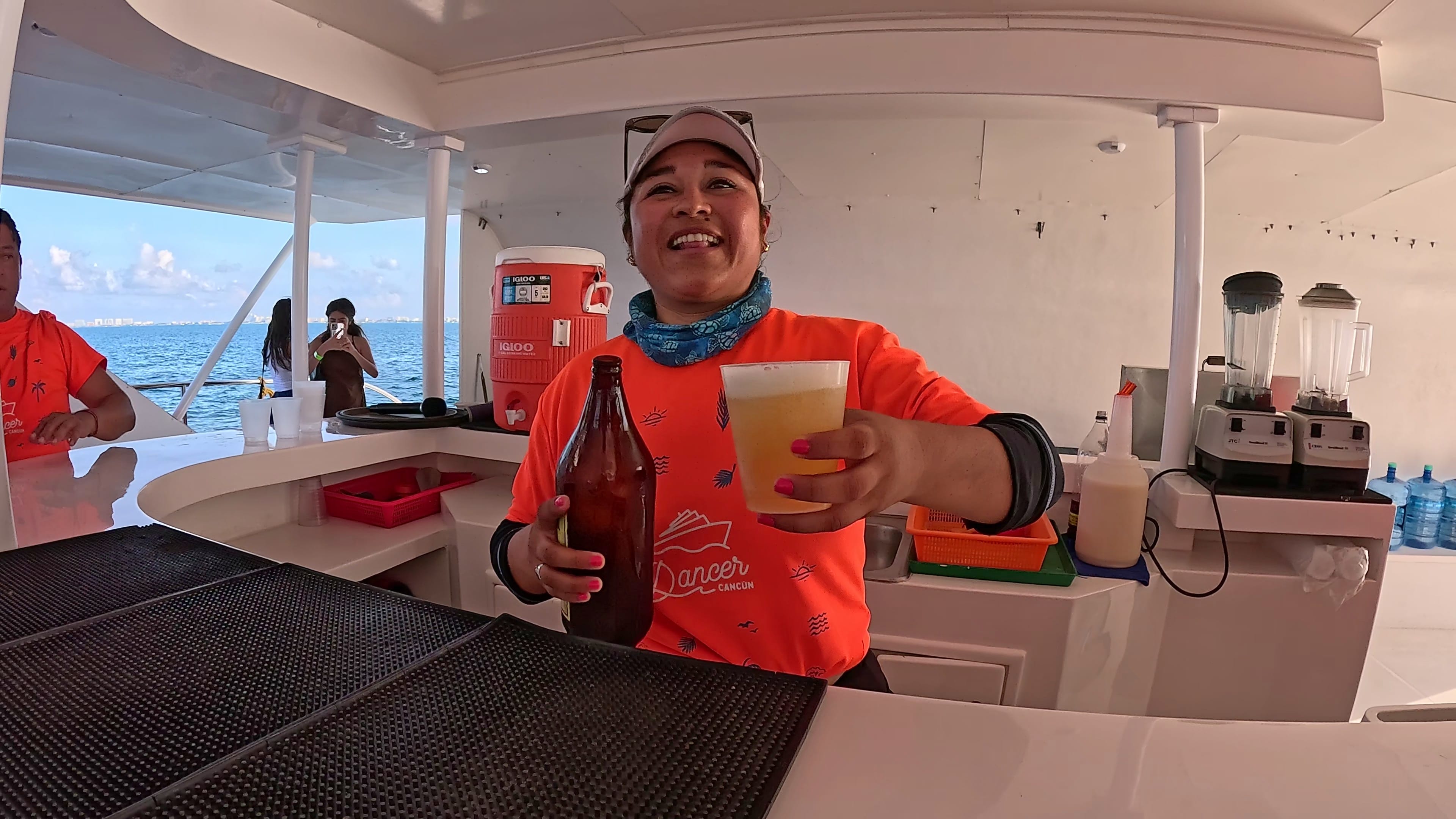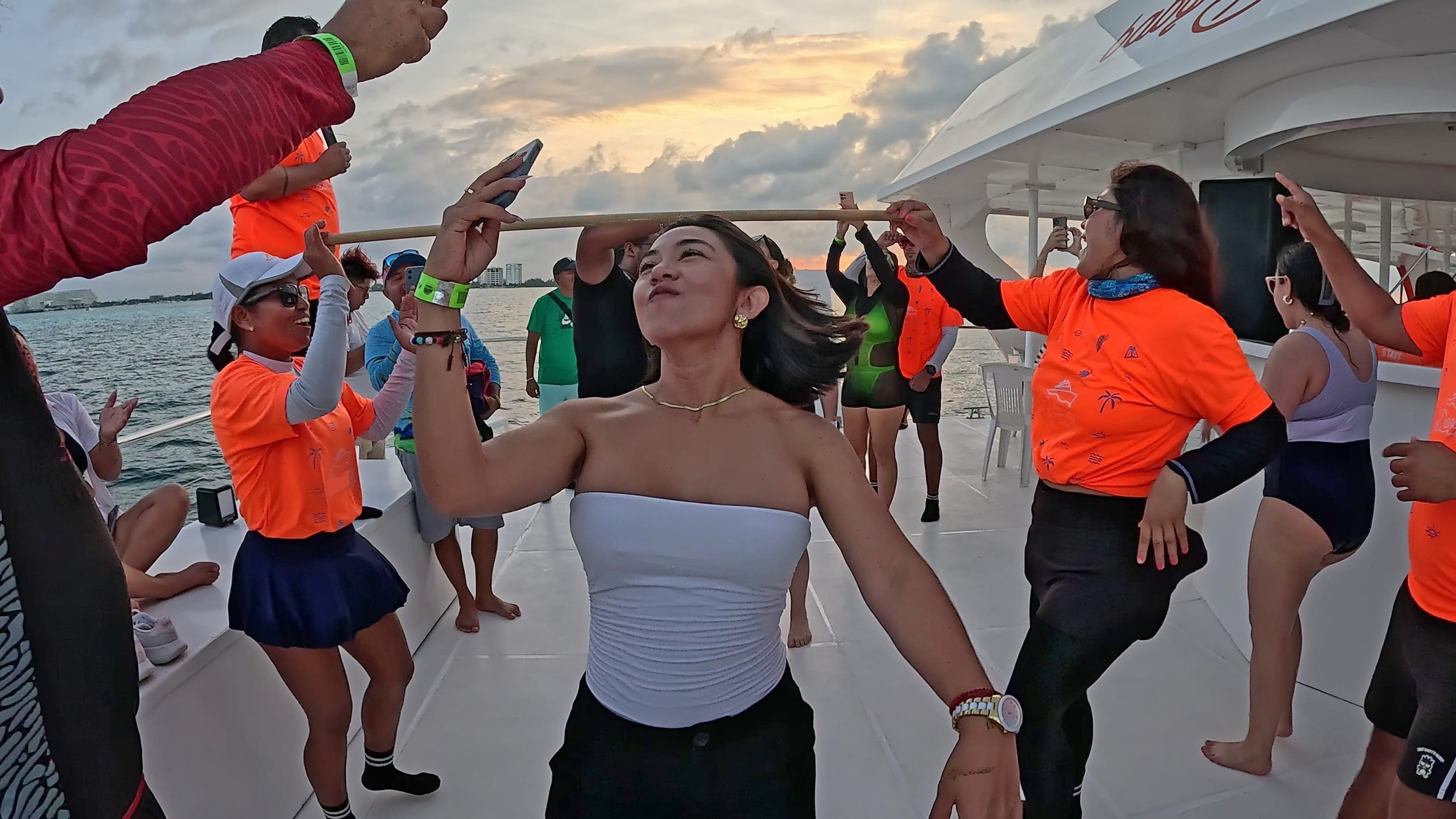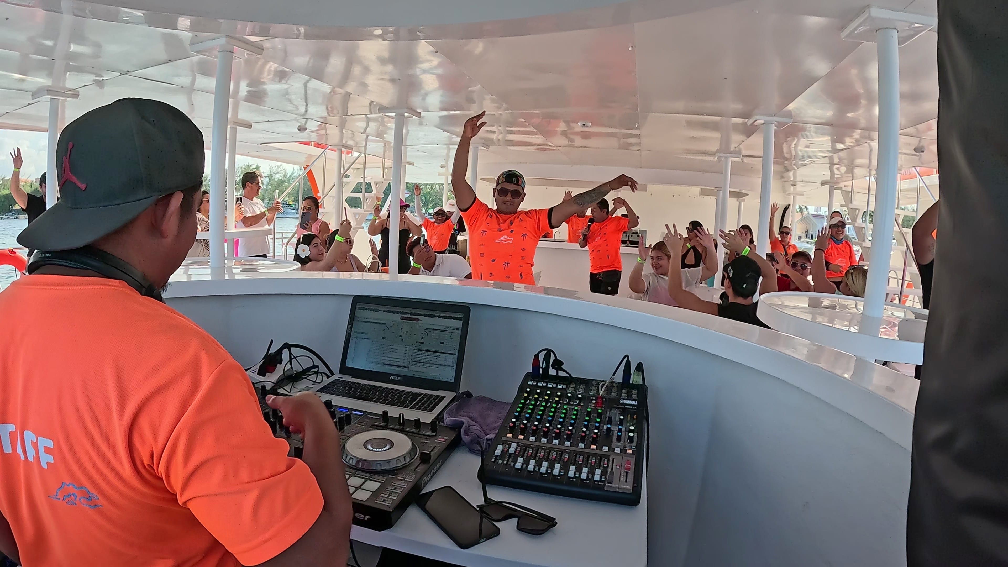 A live DJ and entertainment team create a lively atmosphere on the sail back to Cancún. Dance, unwind, or enjoy the panoramic Caribbean views—your private celebration continues all the way to the marina.