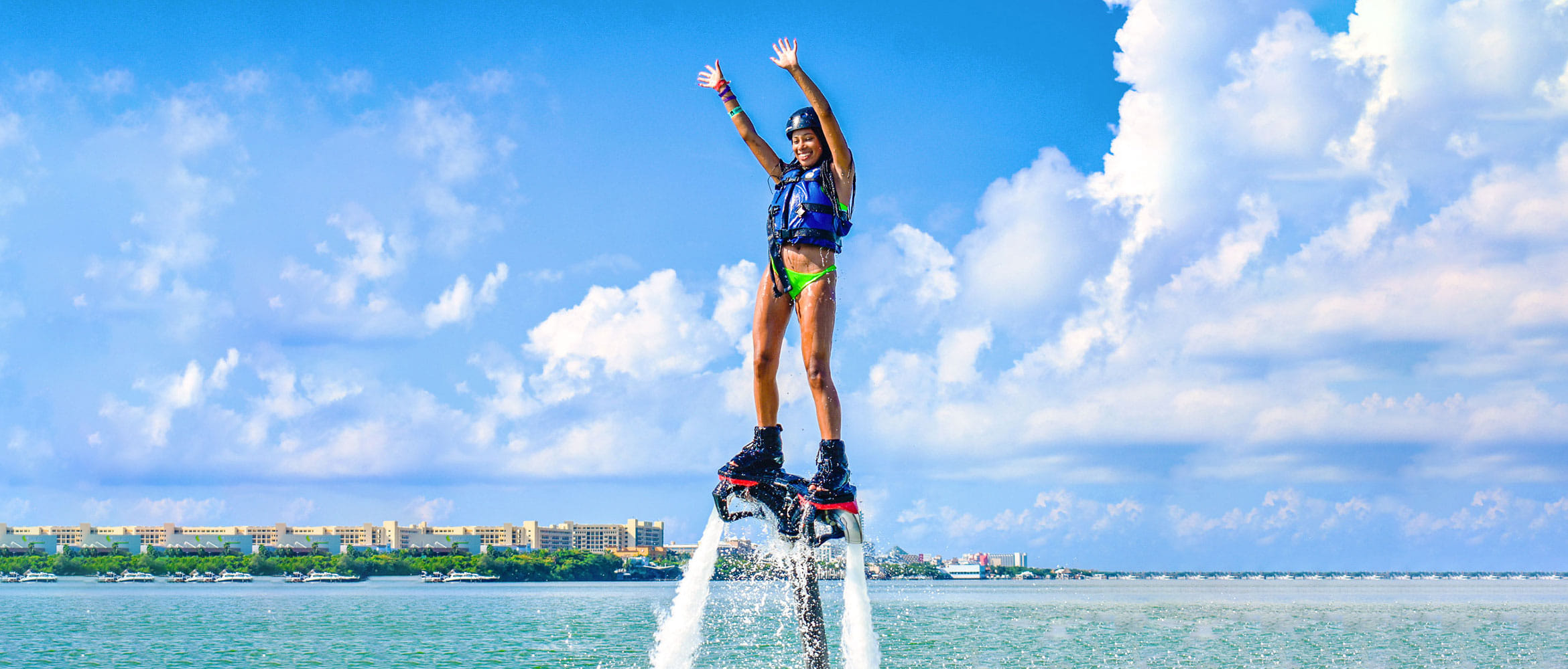 Nestled in the stunning Nichupte Lagoon, adventurers from around the globe come to experience the perfect blend of nature and cutting-edge technology. Flyboard was created for them—a unique water sport that lets you soar above the water, propelled by powerful streams of water.