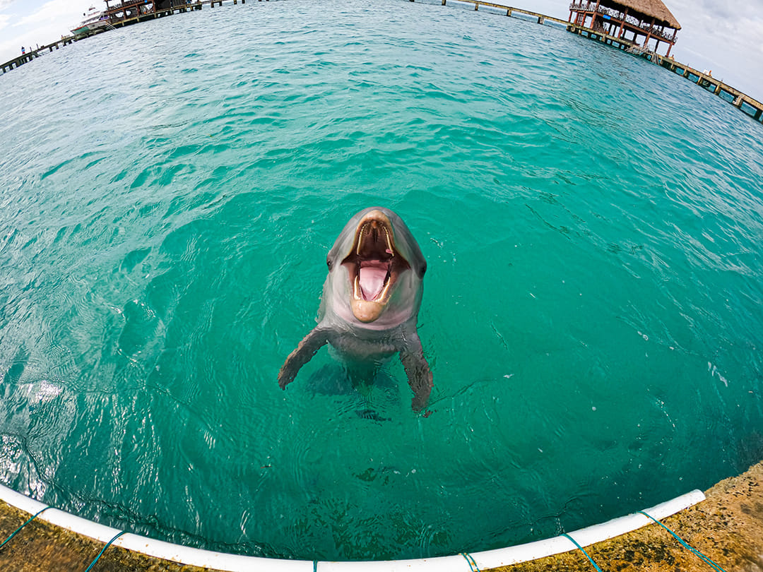 Swim with dolphins in Isla Mujeres! Choose your adventure with exciting interactions and enjoy buffet and drinks on select packages.