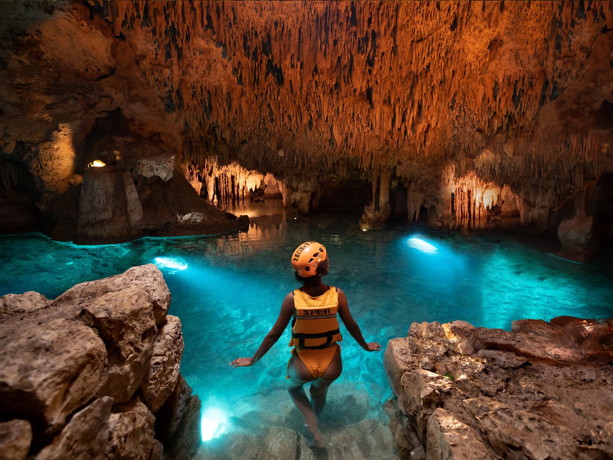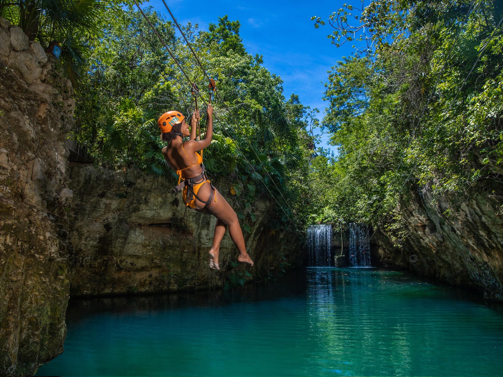 Get ready to enter a world of adrenaline and adventure. Walk to the top of a beautiful tower and fly your way down! You can try both circuits of zip lines, or you can go straight to the water and earth. From paddling along an underground river, or swimming inside ancient caves in the stalactite river, to driving the amphibious vehicles through the jungle, this experience is a must if you consider yourself a real explorer.